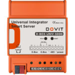 Supporta nativamente tutti i prodotti a marchio Dovit e le espansioni previste in piattaforma come le integrazioni con i bus e le tecnologie EIB/KNX, ModBus IP e RTU, M-Bus, Bacnet, LonTalk, Dmx, Dali, ecc, con i sottosistemi di termoregolazione bus come Mitsubishi, Samsung, Aermec, Daikin e molti altri; con i sistemi antintrusione, come Risco e AVS e di videosorveglianza (Rtsp, Mjpg, Jpg); con i sistemi multiroom di diversi marchi, streaming multimediali AirPlay e DLNA. Compreso di: modulo per la gestione di 24 programmazioni orarie indipendenti per ogni punto, modulo con 250 eventi logici e funzioni gateway, modulo con 250 messaggi differenti per invio notifiche (invio messaggi grafici a video ed espandibile con messaggi mail e Telegram via internet) Modulo con 250 scenari (ogni scenario esegue fino a 1.000 azioni).